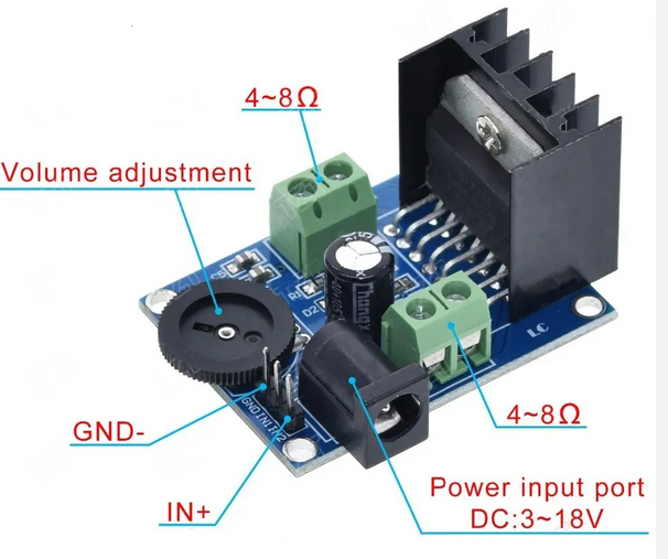 The onboard TDA7266 audio power amplifier chip, double track 7W + 7Wsuitable for 4-8Q 5-15W speakers